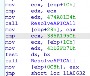 GuLoader uses a hashed technique to resolve an API call; it’s a modified version of djb2 – see the example below: