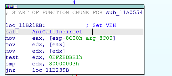 One interesting feature of GuLoader is how it manages to change the code flow during runtime. This is done using vectored exceptional handler (VEH), a software exception handling mechanism. A VEH can be used to intercept and handle exceptions generated by the operating system or running programs.