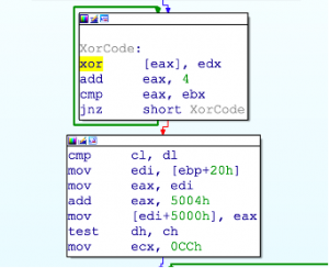 Once the dump is successful, we have to locate the key. This process is reasonably straightforward, as GuLoader encrypts the botnet command and controller (C&C) with the same subroutine as the strings. Here’s the string decoding subroutine: