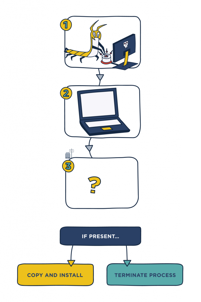 Here, where the data check creates the binary, there is the potential to leverage this process for the vaccine on the proviso that the binary isn’t already running. If it is running, unfortunately, the opportunity to stop it is missed.
