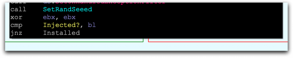 When we ran these checks with Tofsee, we noticed a slight deviation from the typical routine. Instead of checking file or registry-based artifacts, Tofsee cross-checks against an in-memory variable injected during installation.