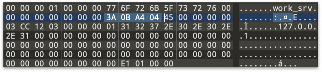 work_srv will point to a controlled sinkhole IP. In this example, we’re going to point it to 127.0.0.1. In addition to this, we will recalculate the crc32 of data buffer so that it passes the integrity check inside the binary: