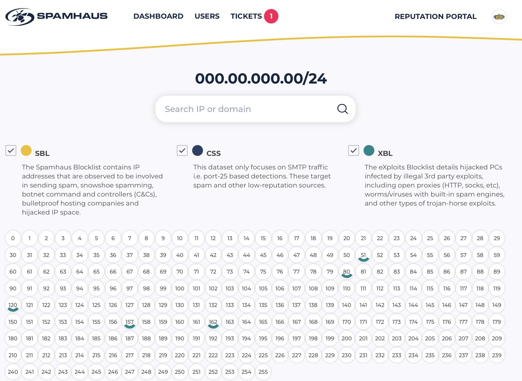 This portal helps you assess the reputation of the IPs on your network. You can manage that reputation by quickly navigating to abuse areas and reviewing the reasons behind listings. Finally, you can quickly resolve issues through our easy-to-use removals process and track those requests via the Ticketing Center. For a quick tour, view this short video or keep on reading.