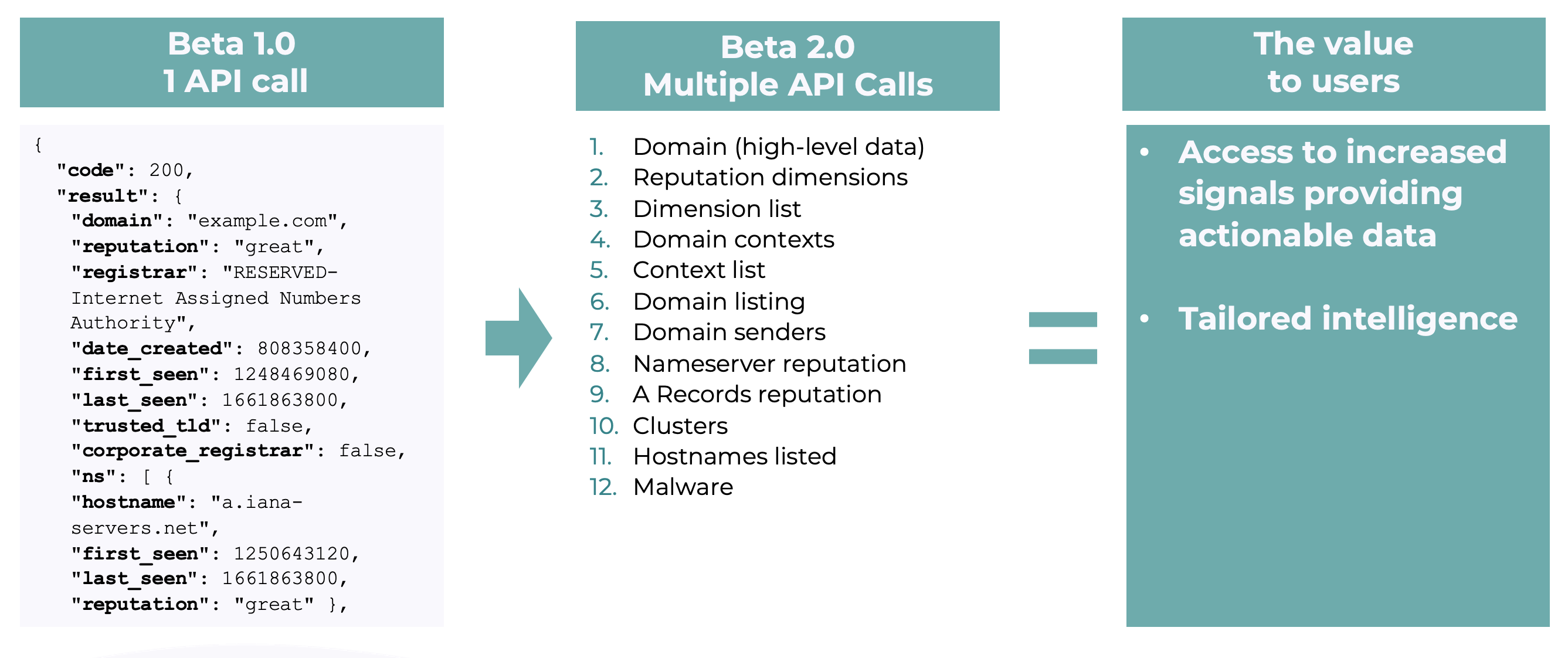Everything! Well, almost. This API is now broken up into several different calls, allowing users to tailor the insight they query based on their individual use cases and requirements. Each part of the API focuses on a different aspect of the signal available, as detailed below: